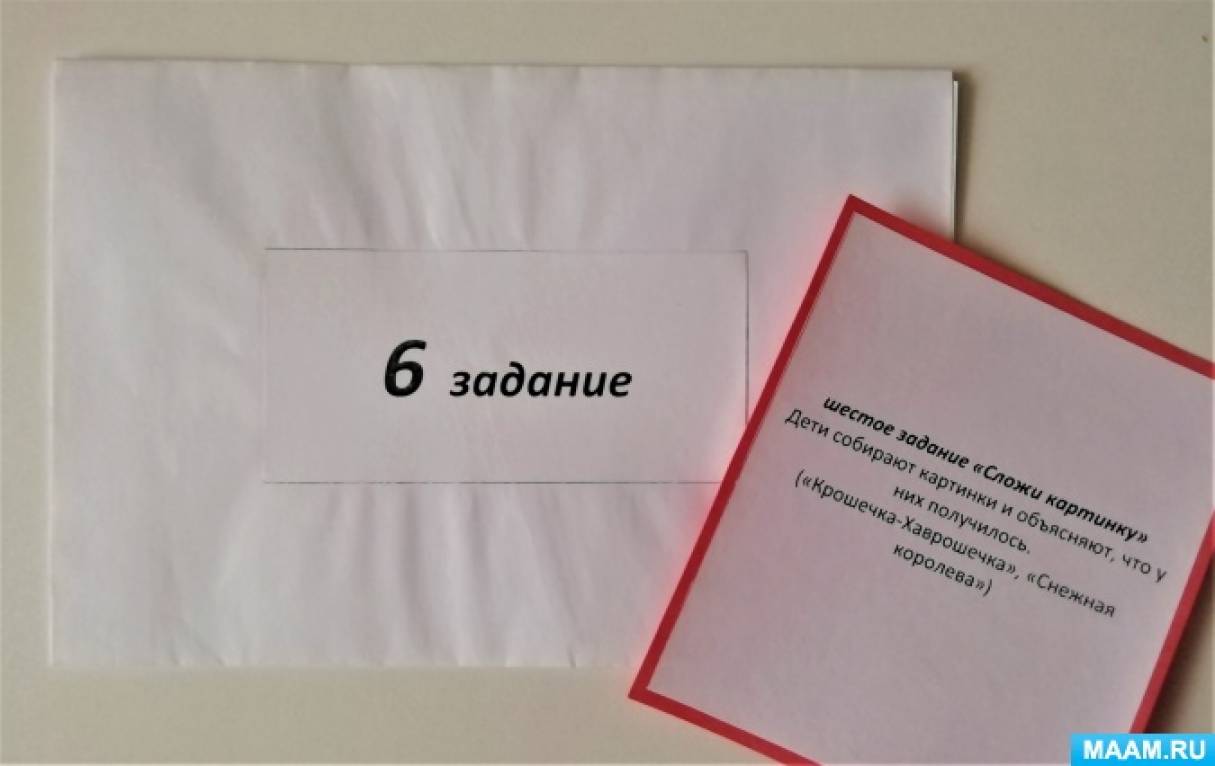Воспитатель: (достаёт конвертик с шестым заданием)
