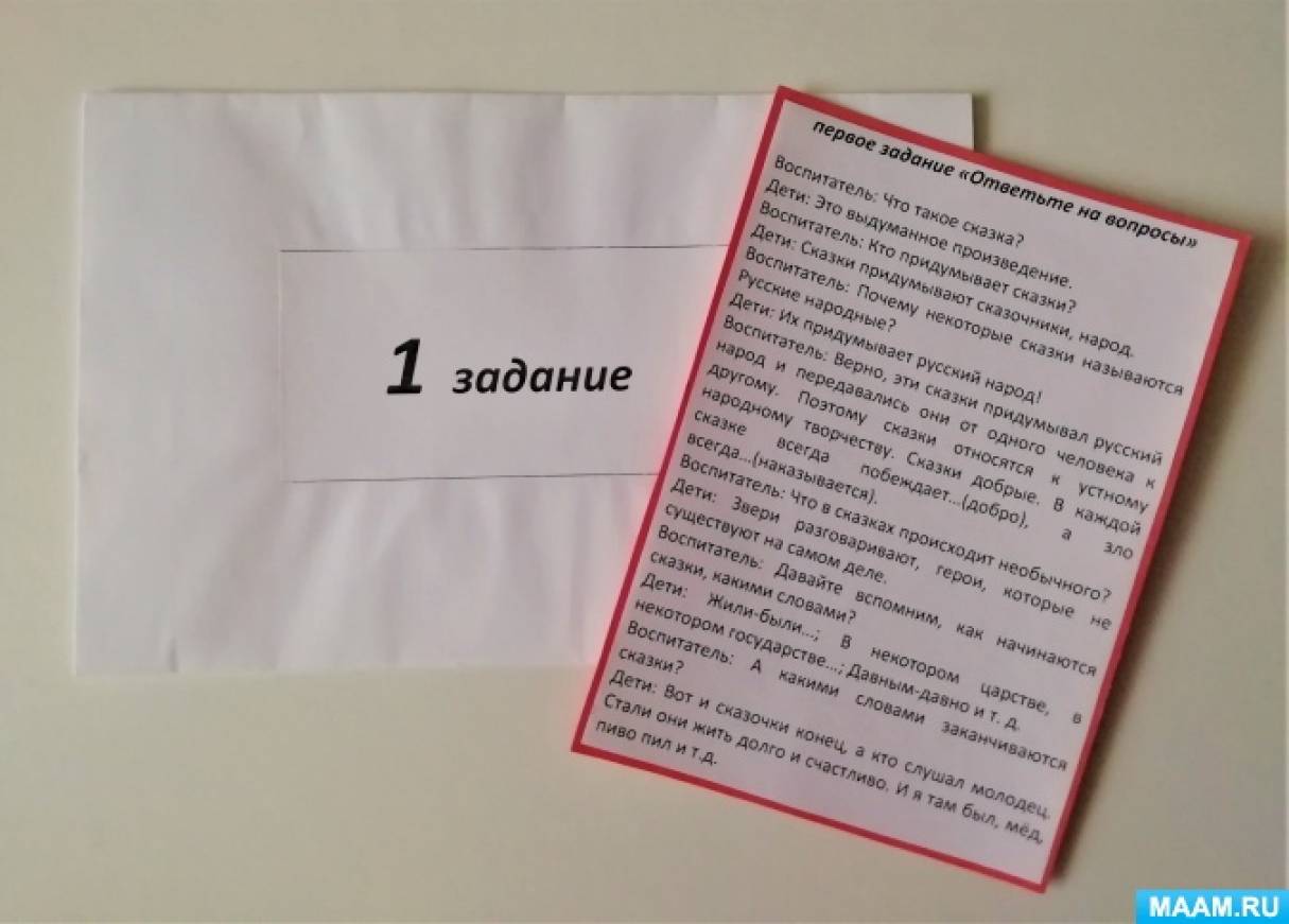 Воспитатель: (достаёт конвертик с первым заданием)