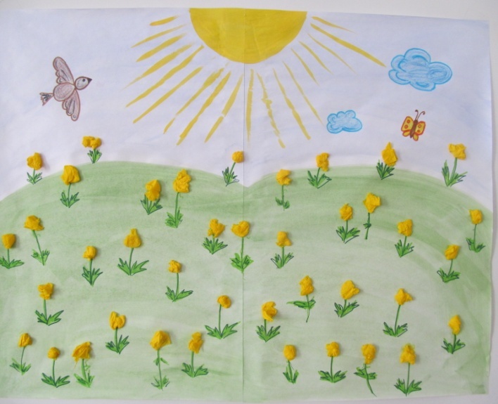 Дети выполняют коллективную работу «Весенняя Поляна».