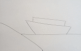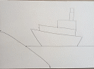 Нарисуйте с левой стороны наклонную линию от края рисунка к середине нижнего края. У нас получился берег и линия моря. На линии моря поднимаем две линии и соединяем их между собой.