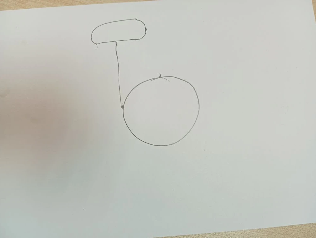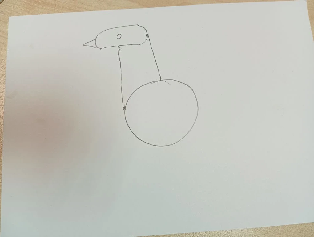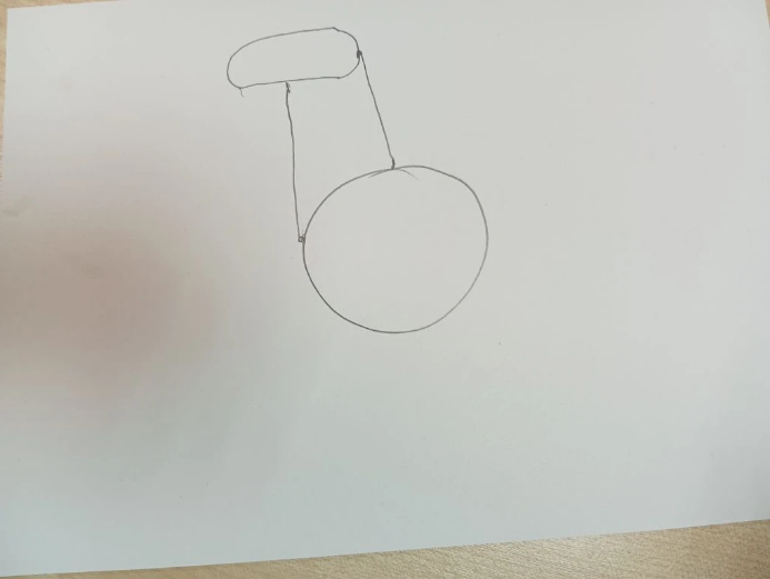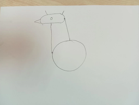 Затем на нарисуйте прямую вертикальную линию вверх с овалом сверху- получилась голова.