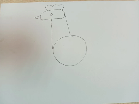 Нарисуйте по центру рисунка круг – туловище петушка, и поставьте точку на левой части этого круга.