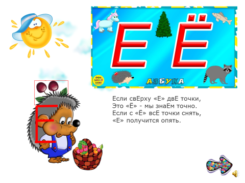 | Ход занятия Речевая разминка Проговариваем скороговорку (повторяем несколько раз) Еле-еле Лена ела Есть из лени не хотела. -Артикуляционная гимнастика Игра «Путаница». Слова в предложении рассыпались, тебе нужно их собрать и расставить так, чтобы получилось связное предложение. Выполняем устно. ВАЛЯ МОРЕ ПЛАВАЛ В ЛУГ ВЫШЛИ НА КОРОВЫ НА СЕЛА ВОРОНА ДЕРЕВО ВАЗА ЦВЕТЫ В СТОЯТ 3.Знакомимся со звуком и буквой Ё,е. -Запомнить, что звук –«Ё»- поющий (гласный), при произнесении звука воздух не встречает преграду во рту (чтобы проверить нужно звук «Ё» пропеть) -Давайте посмотрим на домик ГЛАСНЫХ где живет буква «Ё»? Правильно в нижнем ряду, а мы знаем, что у всех гласных нижнего ряда есть «волшебные капельки», которыми они смягчают согласных. Поэтому буква «Ё» смягчает согласную, если стоит после нее. Например, ЛИ- СЁ- НОК-буква «Ё» смягчила букву «С» и буква «С» стала мягкой (зеленой) -Назови лишнее слово. -Какие еще слова начинаются на букву «Ё» -На что- похожа буква Ё -Найди животных, которые начинаются на букву Ё Обучение грамоте стр. 24 -заштриховать букву Ё,ё красным цветом -нарисуй ей волшебные капельки -слово Ёж раздели на слоги (ёж), поставь ударение -пропиши букву Ёё -выполни задание в рамочке Пропись Не забываем перед работой в прописях делать Пальчиковую Гимнастику: Мы писали, мы писали, Наши пальчики устали. Вы скачите, пальчики, Как солнечные зайчики. Прыг-скок, прыг-скок, Прискакали на лужок. Сели травушку покушали, Тишину послушали стр. 50–прописать ё -прописать Ё -прописать слово ёжик Букварь стр.74 –читать рассказ «Дети и ёж», отвечать на вопросы стр. 75 |
