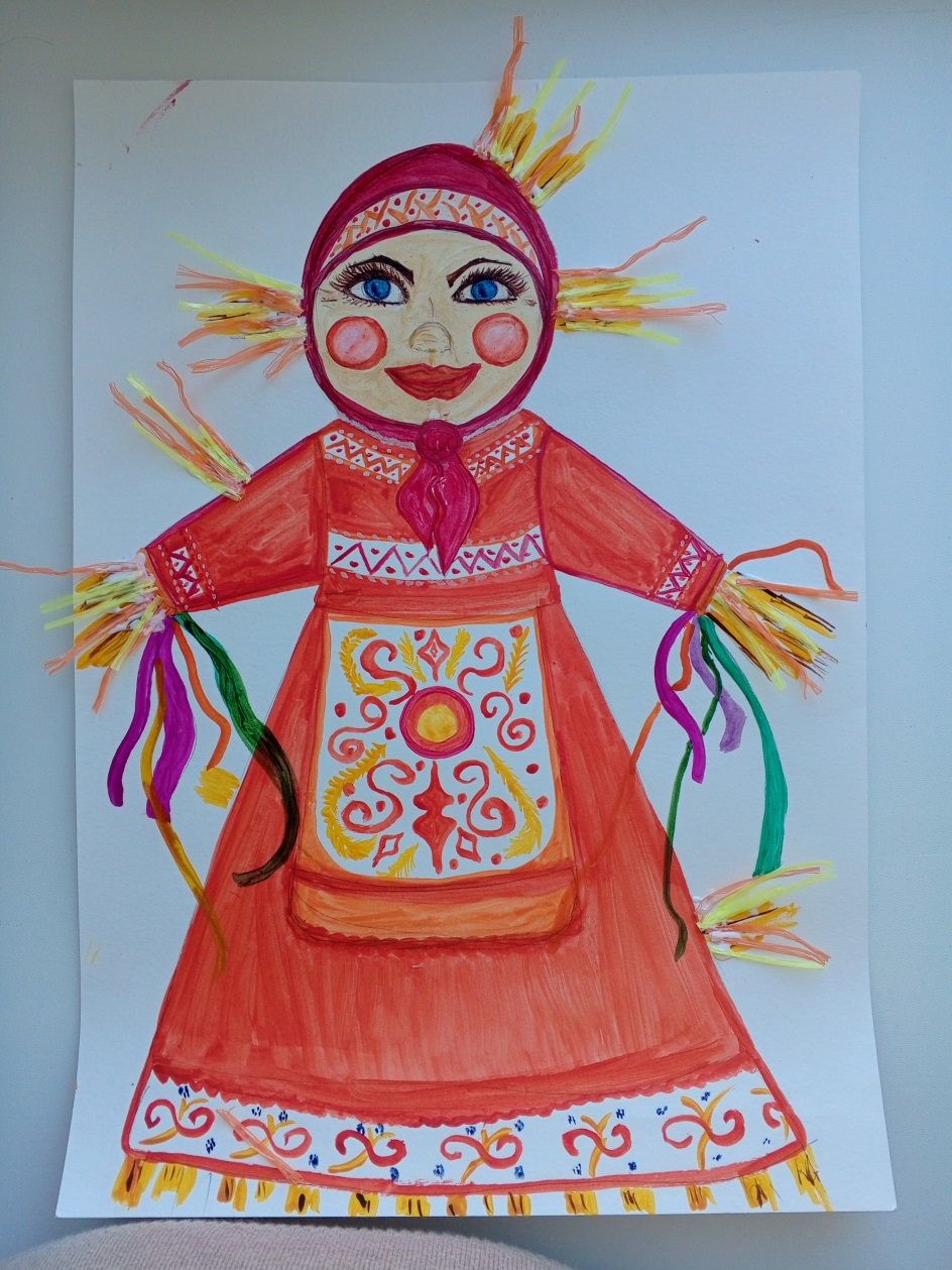 Преподаватель: Вот и пришло время сжечь Чучело нашей Масленицы! Возьмем кисточки, окунем в красную и оранжевую краски и нарисуем костер (дети закрашивают краской Чучело Масленицы имитированным огнем, мысленно кидая в огонь свои страхи, плохие мысли и так далее).