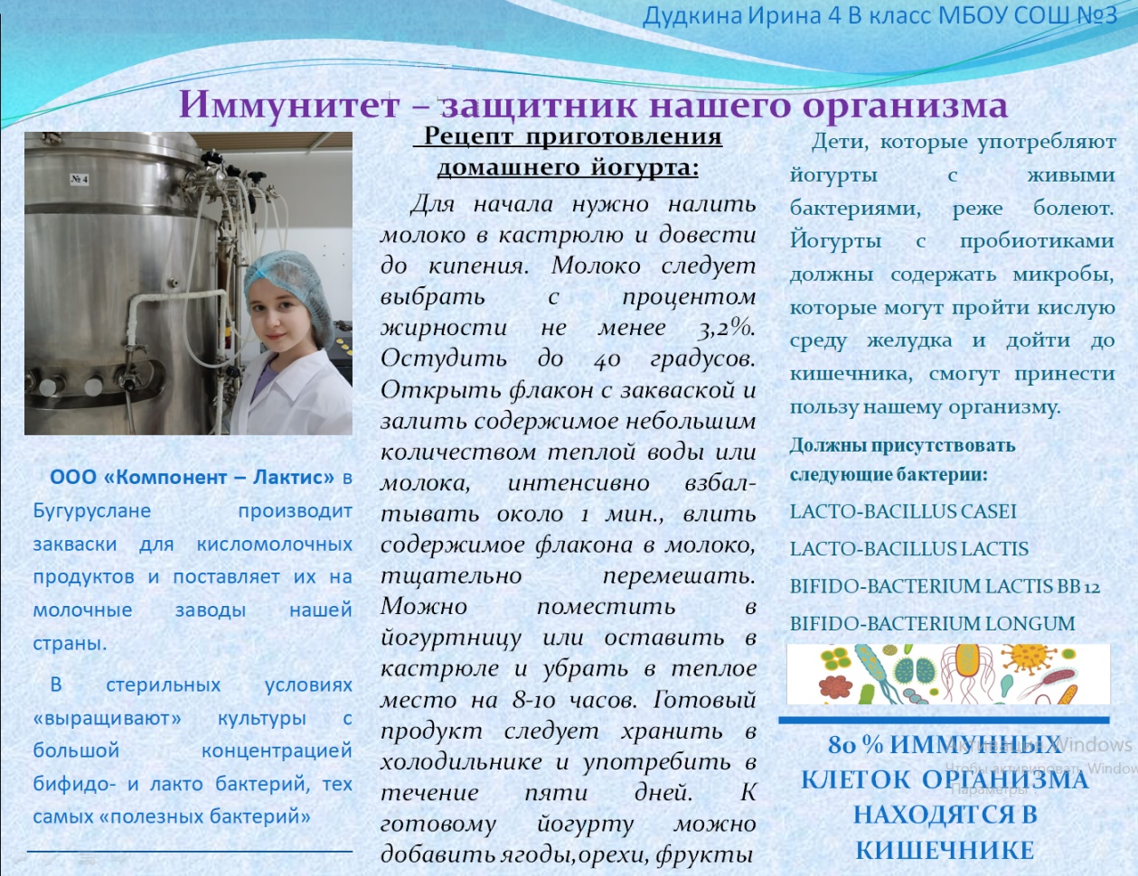 иммунитете, знакомство их с Бугурусланским предприятием, выпускающим полезные закваски для его улучшения.