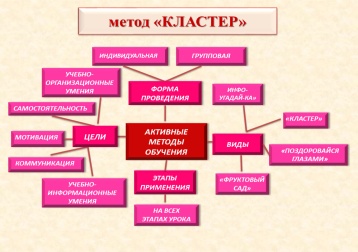 - Уважаемые коллеги, для подведения итога нашей работы, предлагаю вам на имеющихся у вас карточках продолжить составление кластера по теме «Активные методы обучения».