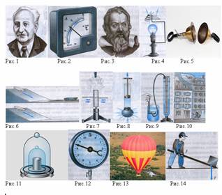 Я сейчас покажу вам на слайде картинки из ваших учебников по физике 7 и 8 класса (автора Перышкин А.В.), вам надо указать напротив номера картинки класс, название того, что изображено на картинке. За правильный ответ вы получите 1 балл, за неправильный ответ у вас вычитается 1 балл. Например, на слайде изображен опыт по инерции: