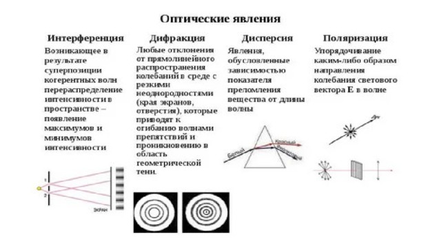 Это явление, при котором свет от нескольких источников (например, от двух лазеров) Интерференция в тонких пленках (мыльные пузыри)