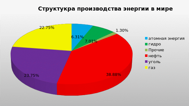 В отличие от всего мира в России около половины всего количества энергии производится с помощью сжигания природного газа (рис. 3).