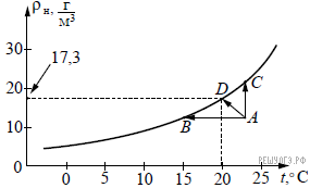 3. Из графика на рисунке видно, что при температуре 20 °C плотность насыщенного водяного пара равна 17,3 г/м3. Это означает, что при 20 °C