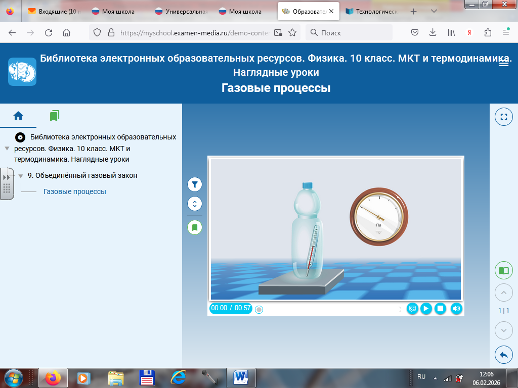 | 10 | Итог урока | 1 мин | Выставление оценок за работу на уроке. Д.З. п.71 тренажер «Газовые законы» | | https://resh.edu.ru/ |