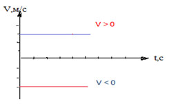 Скорость – величина векторная (слайд 6) [4], поэтому она характеризуется не только модулем, но и направлением. В зависимости от выбранного положительным направления скорость может быть постоянной по величине, но положительной (если движение происходит по выбранному как положительное направлению) или отрицательной по знаку (если движение происходит противоположно выбранному направлению)
