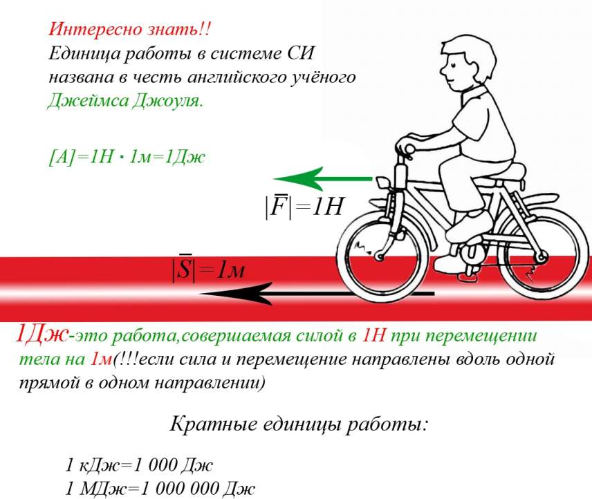 За единицу работы принимают работу, совершаемую силой в 1Н, на пути равном 1м.