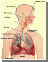 Дыхательные пути: носовая полость, глотка, гортань, трахея, бронхи и бронхиолы.
