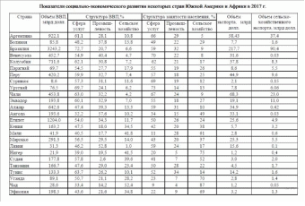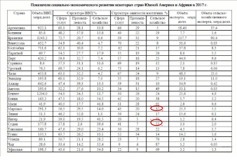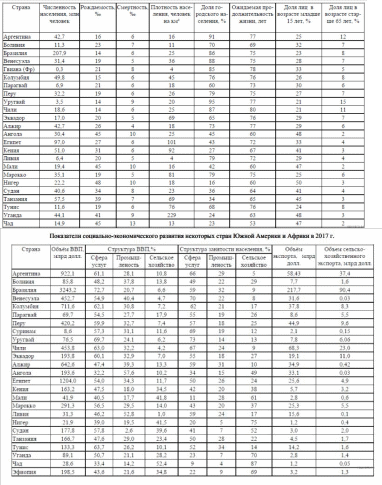 Находим значения доли населения, занятого в сельском хозяйстве для заданных стран. (Таблица «Показатели социально-экономического развития некоторых стран Южной Америки и Африки в 2017 г»).