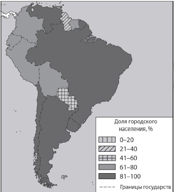По легенде карты определяем долю городского населения Гайана 21-40%