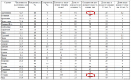 Так как две страны имеют одинаковые значения, находим их данные в таблице: