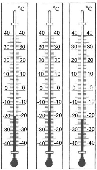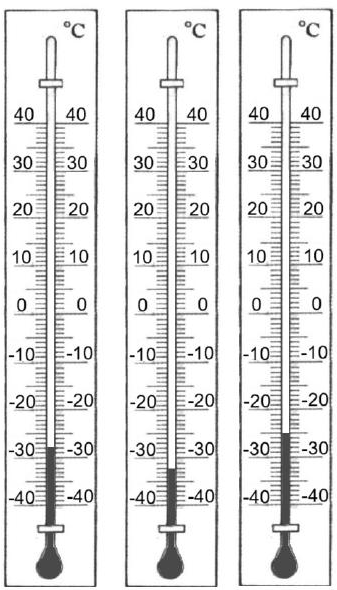 12.Ниже приведены изображения термометра, при помощи которого велись наблюдения за изменением температуры воздуха в течение суток. Сравните показания термометра в разное время дня.