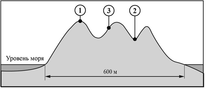 11.На острове в пунктах, обозначенных на рисунке цифрами 1, 2 и 3, были одновременно проведены измерения атмосферного давления. Расположите эти пункты в порядке повышения в них атмосферного давления, начиная с пункта, в котором атмосферное давление было самым низким. Запишите в ответе получившуюся последовательность цифр.