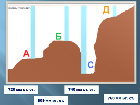 Расставить изменение атмосферного давления с выстой (3б)