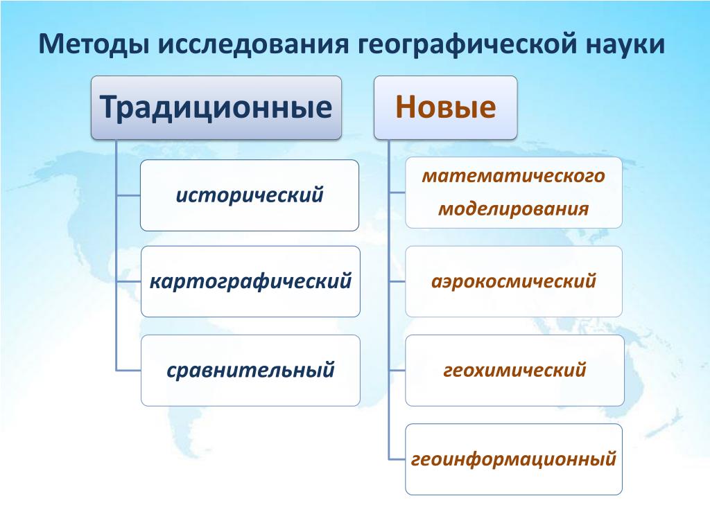 Сравнительно-географический метод. Этот метод является одним из старейших в географической науке. Между собой сравнивают географические объекты, процессы, явления, расположенные на разных территориях или наблюдаемые в разное время.