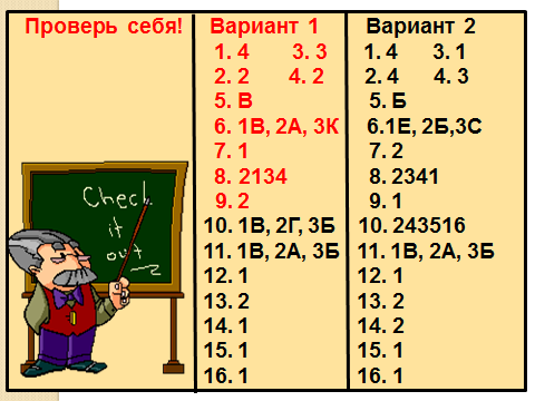 Примечание. На выполнение теста отводится 10-12 минут. Оценку за тест ученики узнают на следующем уроке после проверки учителем.