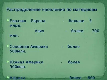 Рост: ежегодно численность увеличивается примерно на 100 млн человек, причём 90% прироста приходится на развивающиеся страны Африки, Азии и Латинской Америки.