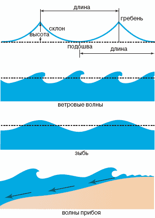Волны – это колебательные движения воды. Причина образования ветровых волн – ветер. Чем сильнее ветер, тем выше волна.