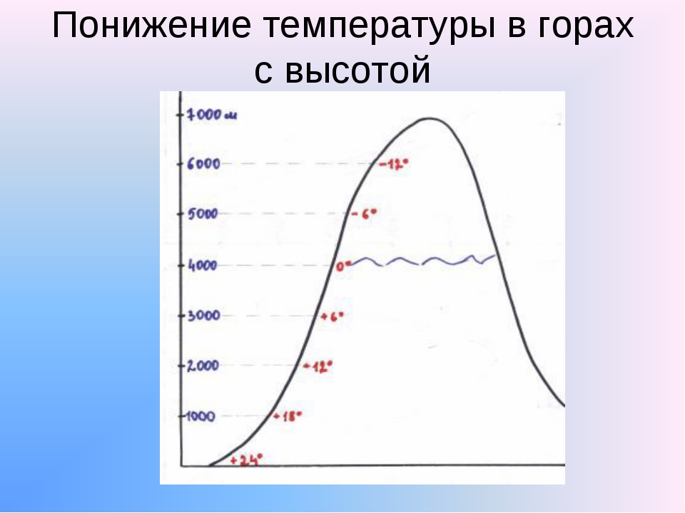 Темп у подножия горы Джомолунгма +24. Определите по атласу высоту вершины и определите температуру на вершине горы (8848м)