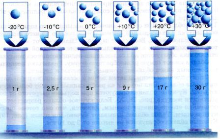 0°С → 5 г/м³ 20°С → 17 г/м³