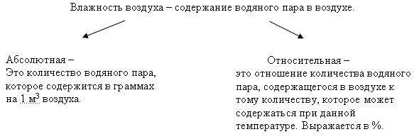 Даются задания (карточки) о насыщенном и ненасыщенном воздухе (работа со схемой)