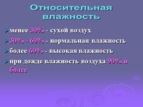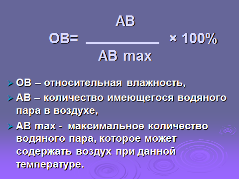 - Мы с вами выяснили, что в теплом воздухе будет содержаться больше водяного пара, чем в холодном.