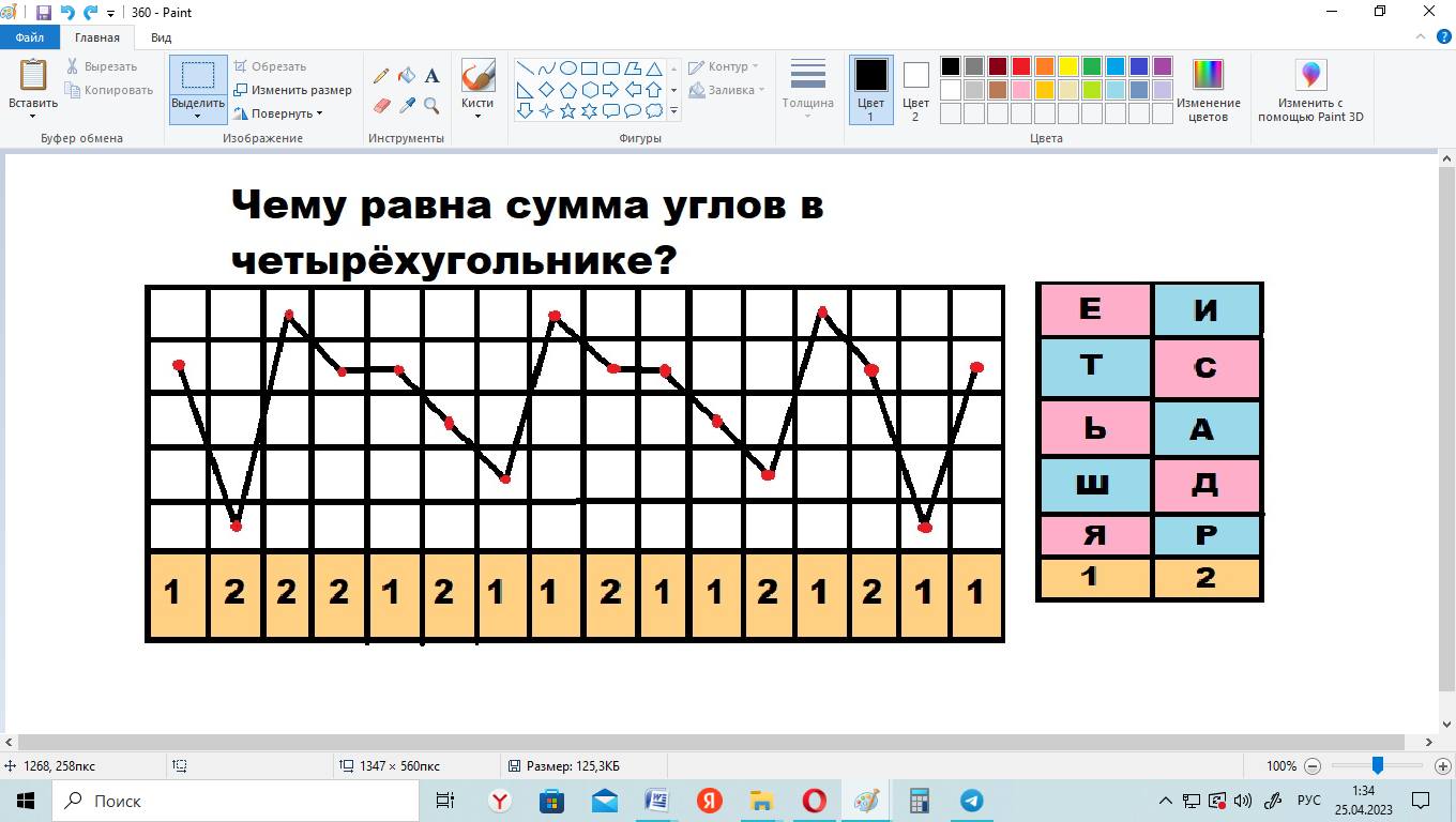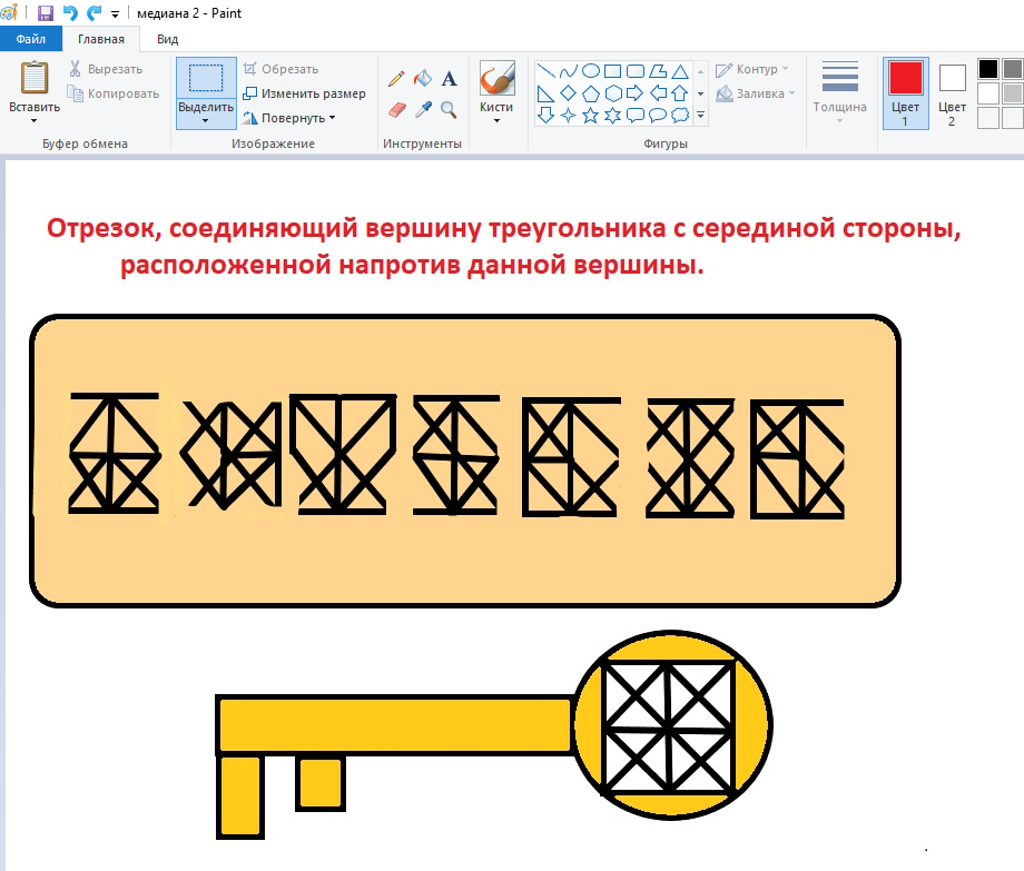 1) Медиана. Дополни черточки до картинки в ключе, получишь нужную букву.