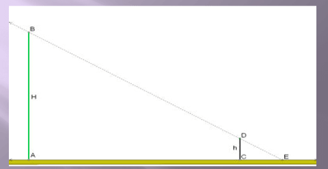Этап самостоятельной работы с проверкой по эталону | Решите самостоятельно задачи. Задача 5 Определить высоту дерева, если рост человека равен 175 см, длина тени человека равна 140 см, а длина тени от дерева составляет 6 м. Задача 6 Путешественнику необходимо измерить расстояние от берега до острова. Какой самый простой способ это сделать? | Выполняют самостоятельную работу. Проведем условно линии, соединяющие вершину дерева с концом тени от дерева и голову человека с концом тени от человека. Получились подобные треугольники АВЕ и СDЕ (по двум углам, т.к. углы падения зависят только от высоты солнца над горизонтом). АВ/ СD = АЕ/ СЕ= К. Отсюда АВ = 175х6:140=7.5 Решение: 1. Сделать схематический чертеж и мысленно провести катет АВ и гипотенузу АС. 2. Измерить углы получившегося треугольника и сторону АВ (предположим, что она равна 100м) и создать еще один треугольник, подобный первому со сторонами DE = 5м, FE = 10м. 3. Треугольники АВС и DЕF подобны. Высчитать их коэффициент подобия k=АВ/DE=20. 4. Найти неизвестную нужную сторону, зная ее сходственную сторону: ВС = 20х10 = 200 м. | Личностные: - формирование мотивов достижения целей, Регулятивные: - принятие и сохранение учебной задачи, Познавательные: - структурирование знаний, - построение речевого высказывания в устной и письменной форме |