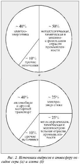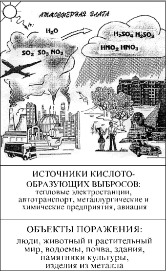 Главные кислотообразующие выбросы в атмосферу – диоксид серы SO2 (cернистый ангидрид, или сернистый газ) и оксиды азота NОх (монооксид, или оксид азота NО, диоксид азота NO2 и др.).