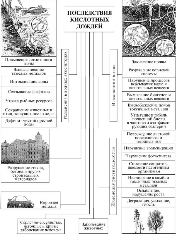 Рис. 5 Воздействия кислотных дождей на окружающую среду