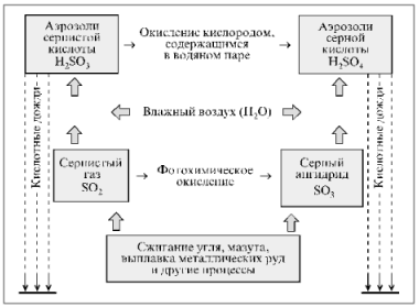 Диоксид серы, попавший в атмосферу, претерпевает ряд химических превращений, ведущих к образованию кислот.