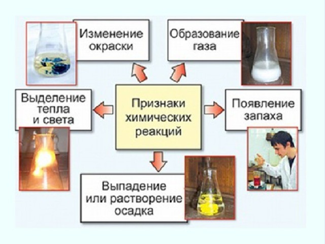 А по каким признакам можно определить, что произошла химическая реакция ?