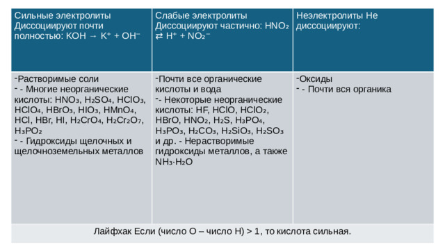 1, то кислота сильная. Неэлектролиты Не диссоциируют:" width="640"
