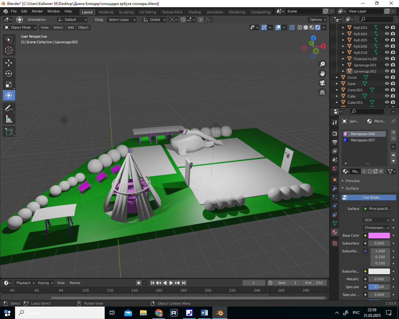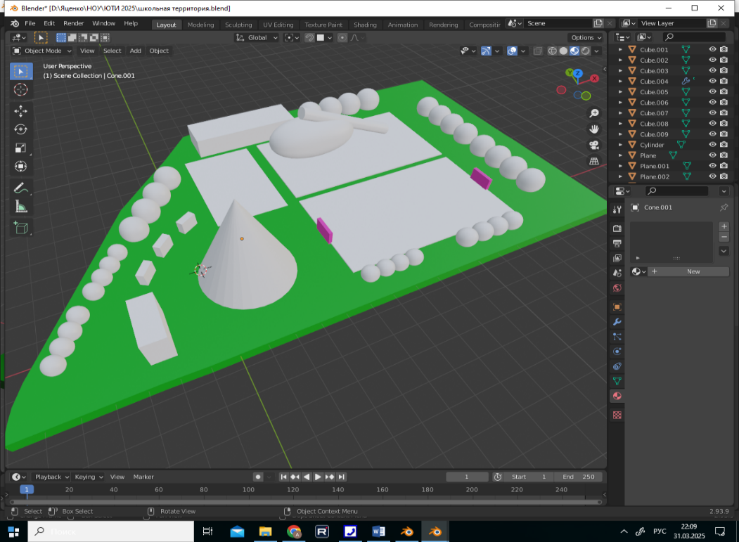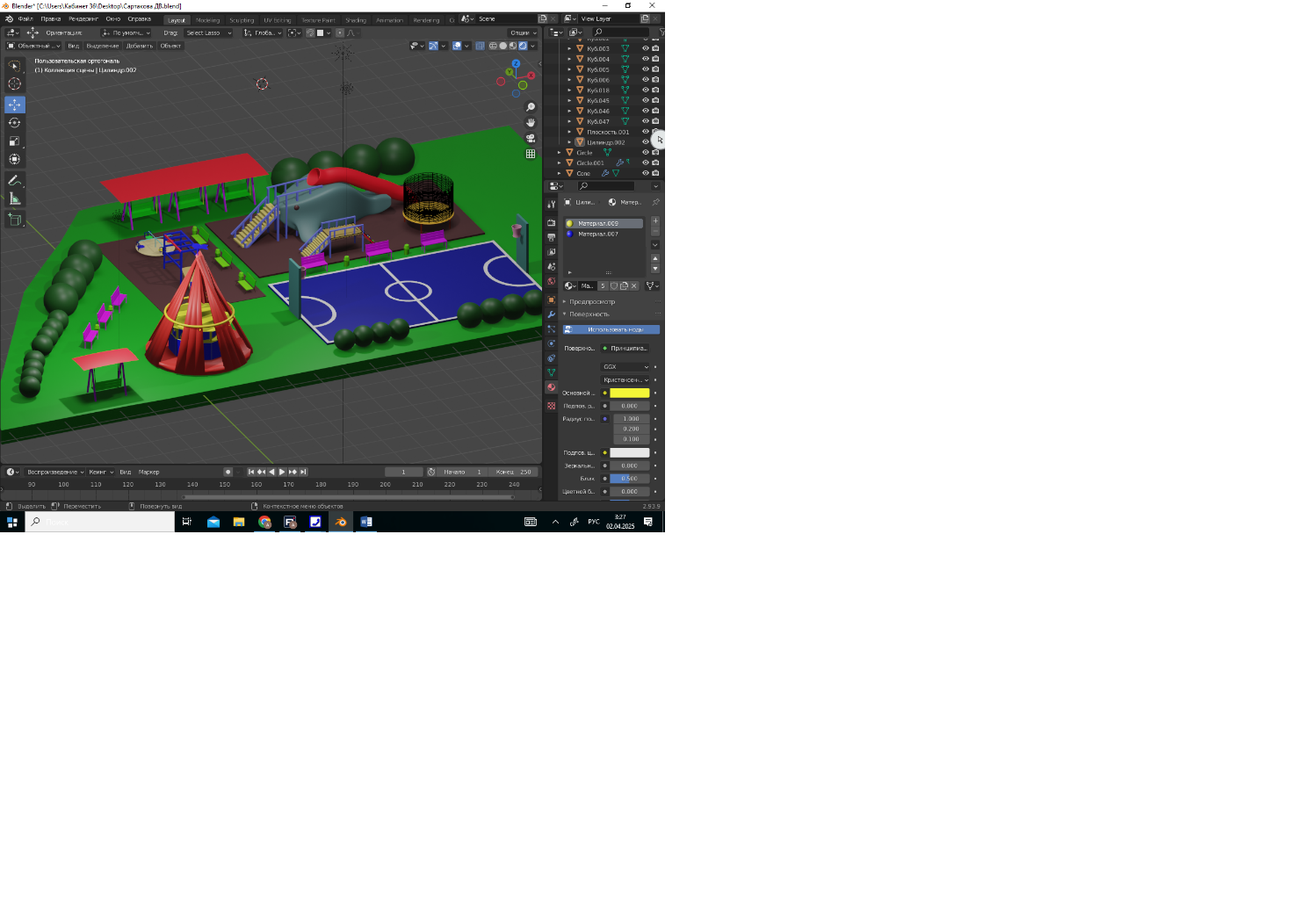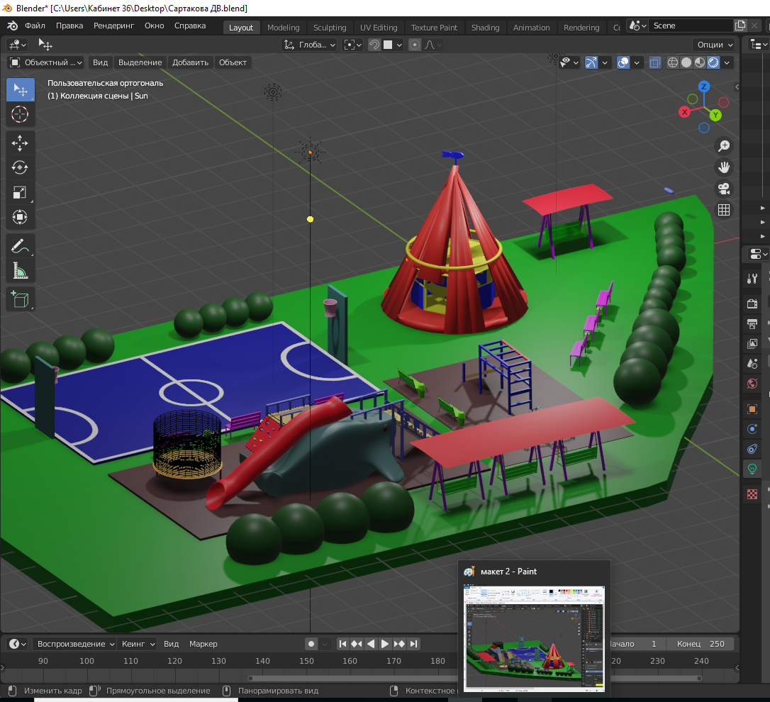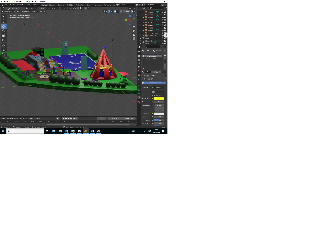 Цель работы: Создание перспективной 3D-модели проекта игровой и спортивной зоны на пришкольном участке в многофункциональной программе Blender.