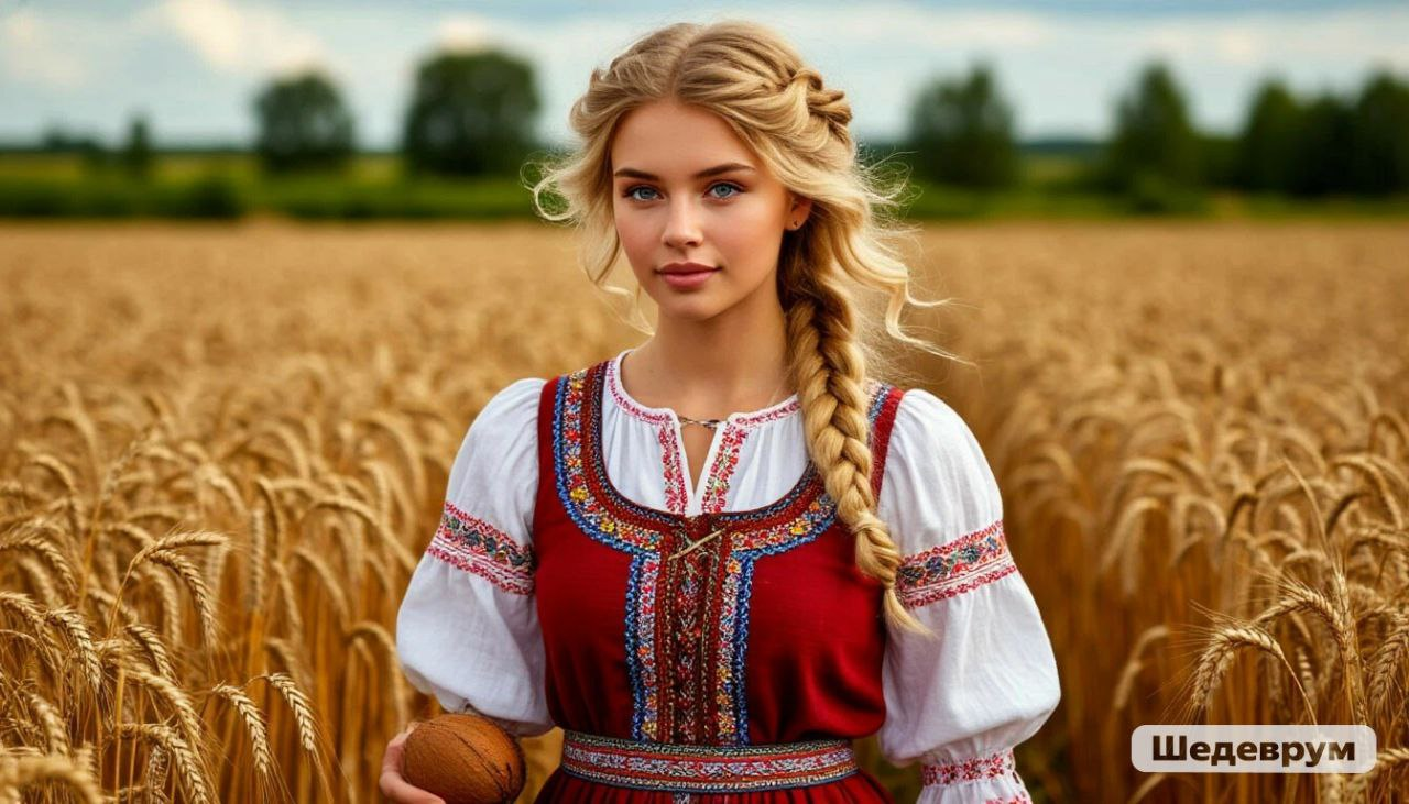 Сделав анализ нейросетей и полученных изображений с помощью них на соответствие заданным параметрам, пришли к выводу, что работа Kandinsky, понравилась нам больше, чем работы остальных. Она сгенерировала изображение по нашему текстовому описанию точнее. Мы видим фотографию девушки со светлыми волнистыми волосами, в красивом русском народном платье и кокошник, которая идет по полю на котором растет рожь. Остальные нейросети — Шедеврум и GigaChat не смогли так точно воспроизвести, то что нам хотелось увидеть.