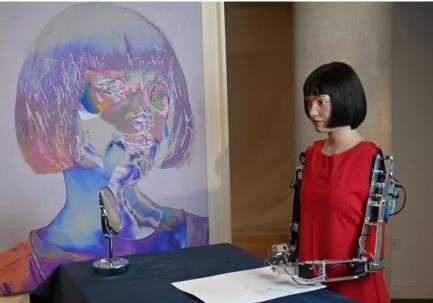 Следующий известный пример человекоподобный робот с ИИ это — Аи-Да, созданный в 2019 году. Является первым реалистичным роботом-художником, способным по заявлению ее создателей самостоятельно создавать произведения искусства, картины и даже скульптуры.