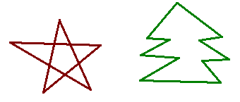 6.Самостоятельно исследуйте инструменты Многоугольник и Ломаная линия. Попробуйте изобразить звезду и елку. Н-р так: