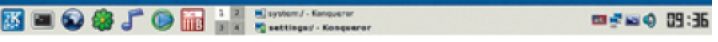 Панель рабочего стола расположена, как правило, в нижней части экрана и служит для запуска приложений. На ней расположен значок с изображением буквы «К» - аналог кнопки ПУСК в Windows. Этот значок служит для вызова главного меню, через которое можно запустить любое приложение из числа входящих в KDE.