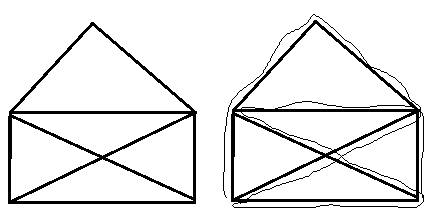 С помощью инструмента Ломаная линия изобразите конверт. С помощью инструмента Перообойдите «без отрыва руки» как можно точнее вдоль контура полученной фигуры, не проходя вдоль одного и того же отрезка дважды.