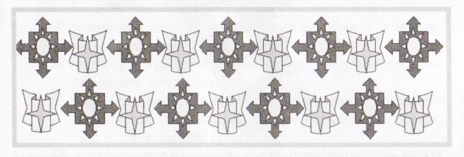 С помощью инструментов панели Рисование изобразите циферблат с двумя стрелками. Чтобы циферблат был симметричным, сначала изобразите в центре экрана пересекающиеся горизонтальную и вертикальную прямые — оси симметрии. Пытайтесь рисовать рационально — копируйте повторяющиеся фрагменты, при необходимости изменяйте их с помощью команд Повернуть, Отразить.
