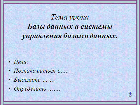 Тема урока: Базы данных и системы управления базами данных