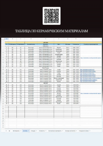 Также существует возможность воспользоваться специально разработанной таблицей. Эта таблица содержит обширную информацию о различных керамических материалах, включая их состав, свойства и применение. Кроме того, таблица предоставляет данные о магазинах и онлайн-платформах, где можно приобрести интересующий вас материал (рис.4).