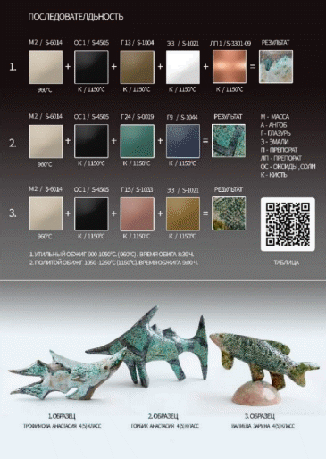 В пособии представлены цветовые схемы и последовательность выполнения, позволяющее обучающимся экспериментировать с различными сочетаниями цветов и глазурей, визуально оценивая результат до начала обжига.