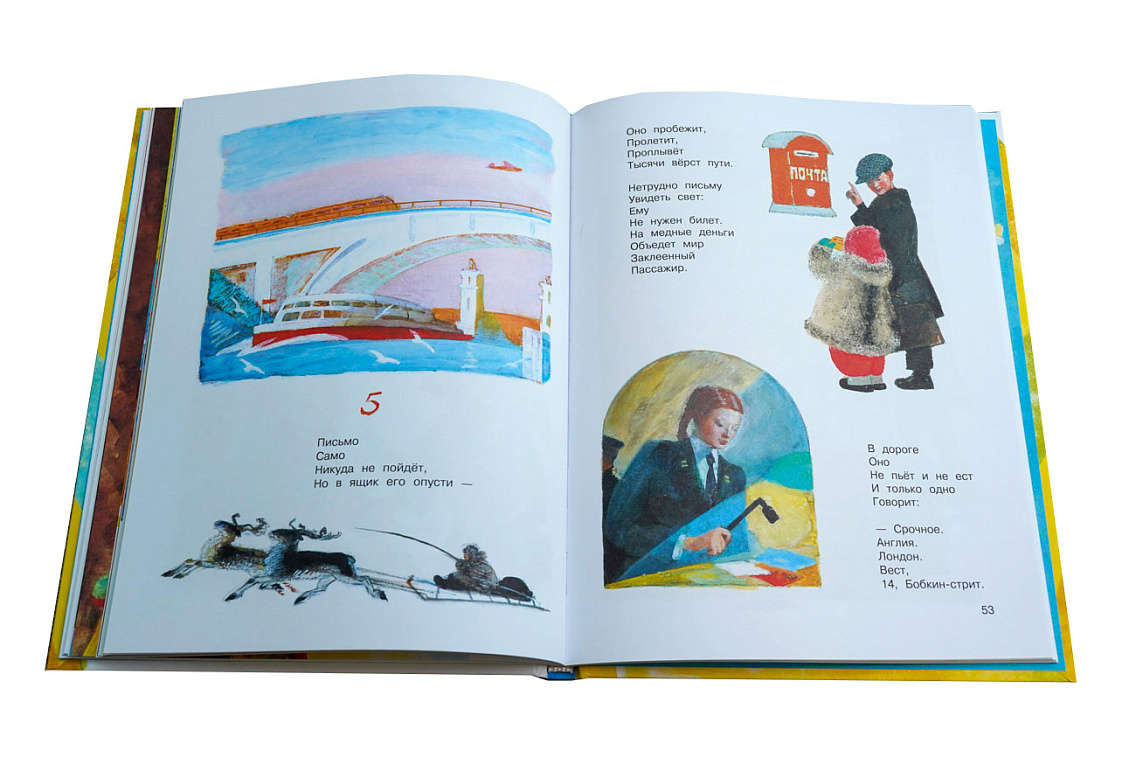 Какую бы книгу с рисунками Ю. Д. Коровина мы ни взяли, везде языком линий, красок живо, ярко, выразительно рассказывается о том, что волнует каждого ребенка. Рассматривая красочную книгу В. Маяковского «Детям», мы и не догадываемся, какие трудности испытывал, работая над ней, художник. «Ни одна книга не оставила мне столько загадок, как В. Маяковского «Детям». Никогда передо мной не вставал так остро вопрос стиля» - так писал Ю. Д. Коровин, вспоминая этот период. Открывая книгу, мы сразу же знакомимся с поэтом. «Это он написал для вас эти стихи»,- как бы говорит художник.